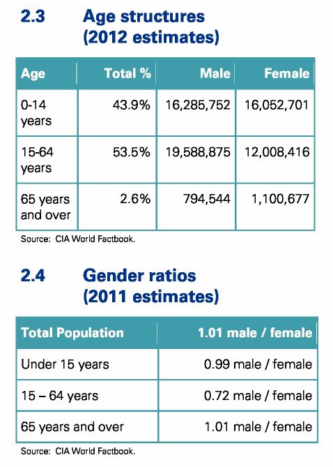 Estimates explicitly take into account the effects of excess mortality due to AIDS. This can result in lower life expectancy, higher infant mortality, higher death rates, lower population growth rates, and changes in the distribution of population by age and sex than would otherwise be expected.
