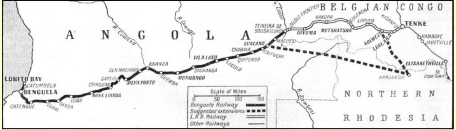 Part of the proposed Chinese loan will be used to restore the railway system, including the line from Kolwezi in Katanga to Dilolo on the border with Angola, where it will link up with the Benguela railway which runs to Lobito on the Angolan coast. The railway, which is the shortest route from Katanga to the coast, functioned during colonial times but ceased operations during the civil war. See history of the Benguela railway.