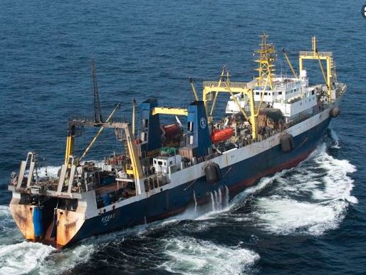Et de retour à Nouadhibou, nous sommes allés à la pêche dans la baie. Il suffisait de lancer la ligne pour qu'un poisson s'accroche à l'hameçon. L'abondance. Mais nous avons été choqués par la présence de plusieurs énormes navires de pêche industrielle comme celui-ci, Russe et chinois.