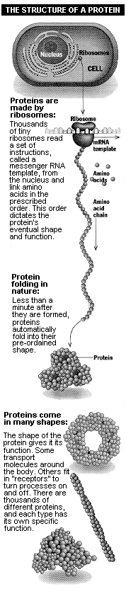 Proteins -- hundreds of thousands of different ones -- are the biochemical molecules that make up cells, organs and organisms. Like the larger structures, proteins also put themselves together, in a process termed "folding." How they do that is called "the protein-folding problem," and it may be the most important unanswered question in the life sciences. First posed in 1935, it has been the undeciphered message, the unsolved equation, the unassembled jigsaw puzzle for three generations of scientists.