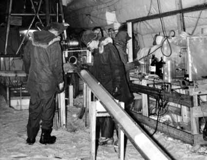 Viewing a section of core, 1964. Compare the picture here of the 1989-92 GISP trench.