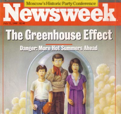 Global warming reached the status of a leading public issue in the summer of 1988 with lead stories in major media, like this Newsweek cover story of July 11.