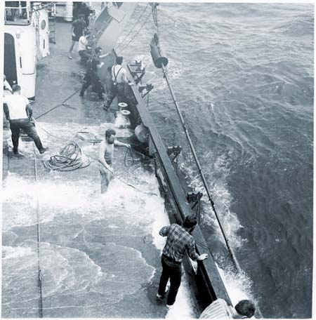 Deep-sea coring operation on Lamont's Research Vessel Vema in the 1960s.