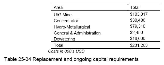 | replacements are considered to be required from year 5 thru 20 at a total cost of 2 312 630 000 US$ which represents 3.4% of the initial equipment of years 1 thru 4. Thus 70% of initial equipment is replaced from year 5 thru 20. | ||||