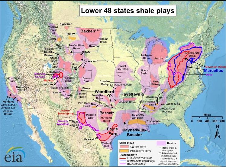 Mais il y beaucoup plus: le gouvernement s'apprête à voter la loi 1380 [lien]. Le gouvernement veut promouvoir la transformation énergétique en subventionnant les constructeurs de véhicules de transport routier qui passeront du diesel au gaz naturel et les stations services qui s'équiperont d'équipements d'approvisonnement en GN. Pendant ce temps, le charbon connaît pour la première fois depuis des décennies une baisse de la production [lien] (production 2011, 1.1 milliard de tonnes); les vieilles centrales se convertissent au GN. Quant aux coûts et prix, le coût d'exploitation du gaz de schiste une fois l'investissement des forages et l'équipement réalisés, est quasi nul. Ce sont les aléas éventuels de forage, le traitement des eaux de la fracturation hydraulique, la pollution possible de nappes phréatiques par défaut d'étanchéité de la colonne de forage à la traversée de la nappe, qui peuvent gréver les coûts. Mais les retours d'expérience sont déjà très nombreux et selon cette étude du "energy study group" de l'université de Yale [présentation ici], les bénéfices tirés des gaz de schiste sont très supérieurs aux coûts, même avec les prix du gaz qui ont considérablement baissé avec l'abondance de la production; Voir cette étude ici d'une équipe de 5 étudiants du "energy study group" de l'université de Yale. La rentabilité dépend principalement du volume de la production cad. du débit et du nombre d'années pendant lesquelles ce débit sera effectif. Pensez aux puits de pétrole en exploitation depuis des décennies en Île de France [lien]. C'est donc une activité promise à un brillant avenir, pour l'économie nord-américaine - production d'électricité, chauffage des bâtiments, transports, et industries chimiques - et grande pourvoyeuse d'emplois pour le futur, en raison de tous les usages énumérés ci-dessus et d'autres à venir. Un bémol toutesfois: on ne connaît pas le volume des réserves de gaz de schiste avec les mêmes degrés de certitude que des réserves de pétrole, et encore moins que des réserves de charbon ou de minerais métalliques cad. la relation production/jour et durée de vie (tout gisement connaît un pic puis une descente). C'est l'expérience qui dira quelle est la durée de vie effective de forages de gaz de schiste. Pour cette raison il est imprudent d'avancer des chiffres d'années de réserve à la consommation actuelle de gaz aux États-Unis; certains parlent de 100 ans, mais d'autres sont sceptiques au vu du ralentissement de la production de forages dans certains bassins - Haynesville et Barnett au Texas et Louisiane ainsi que Woodford dans l'Oklahoma. En France, nos écologistes sont contre toute forme d'exploitation et de recherche de gaz de schiste sur le territoire français; un anachronisme qui évoque l'ancien régime. Ce sont eux qui fixent la politique de l'État et ainsi tuent la liberté d'entreprendre des sociétés pétrolières pour tenter de trouver si possible des ressources analogues chez nous, afin de satisfaire des besoins des consommateurs français dans le futur, ce qui fournirait de nombreux emplois pour ceux qui nous suivront. Pour le moment en France nous n'avons que des données de l'inventaire géologique national [lien], cad. qui concernent des régions de France à bassins sédimentaires connus pour leurs conditions favorables à des accumulations de matières organiques - bassin parisien, bassin d'aquitaine, plaine d'Alsace, sud-est de la France - et où des ressources de charbon, de pétrole, et de gaz ont déjà été exploitées. Le gaz de schiste est une ressource potentielle entièrement nouvelle permise par les progrès techniques en matière de forages pétroliers, des techniques de la géophysique. Trouverait-on en France des bassins analogues à ceux de la ceinture de feu (ring of fire) des États-Unis? En France, on se refuse de le savoir. Mais au Royaume-Uni, en Pologne, en Allemagne, en Suède, en Chine et ailleurs, les recherches se déroulent. Tout ceci ne doit pas empêcher de poursuivre tous les efforts pour développer les énergies renouvelables - hydraulique, solaire photovoltaïque et thermique, éolien, hydrolien..... car ce qui comptera demain c'est la diversité des sources d'énergie.